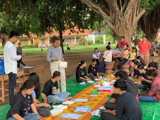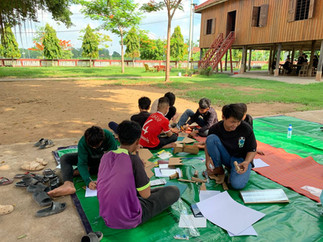 With local pagodas and schools actively involved at each stage of their tour, the traveling quartet - artists Sao Srey Mao, Neak Sophal, Mech Sereyroth and Prak Dalin - are now preparing for their second and third workshops, respectively in Kratie province (12 July at Wat Manhjak Thmor Kre pagoda, in collaboration with Thane Ke Nigh School) and in Stung Treng area (15 July at Preah Ko Temple Thale Boravei Commune).